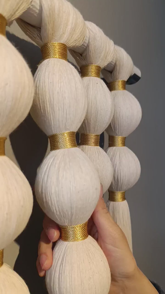 Large Boho Woven Wall Hanging: Gold Thread Tapestry (150x110 cm)